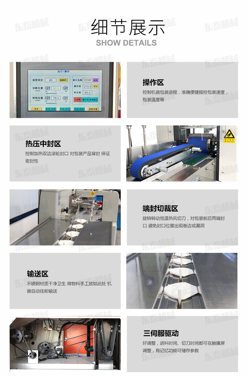 口罩包裝機可用于餅干、月餅、蛋黃派、米餅、雪糕、方便面、巧克力等塊狀產(chǎn)品的包裝,特別適合于小批量單一產(chǎn)品的包裝。