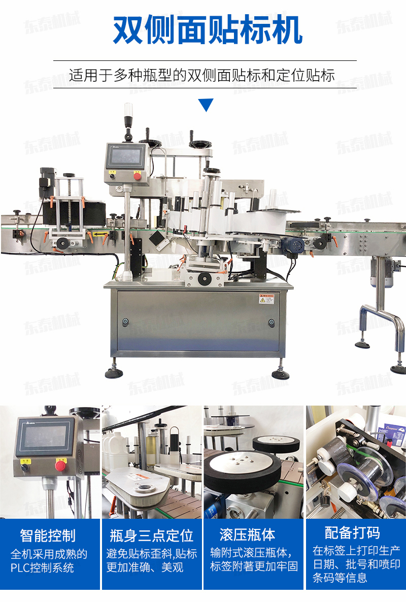 全機(jī)采用的技術(shù),微電腦-PLC-電子光纖傳感器控制系統(tǒng),使整機(jī)運(yùn)行穩(wěn)定、高速; 操作系統(tǒng)采用操作界面控制,操作簡(jiǎn)便、實(shí)用、效率高,并有產(chǎn)量記數(shù)功能; 技術(shù)的速度快且穩(wěn)定; 適用范圍大,可用于各種尺寸的圓形瓶貼標(biāo); 輸附式滾壓瓶體,使標(biāo)簽附著更加牢固; 前后段可選連線使用。
