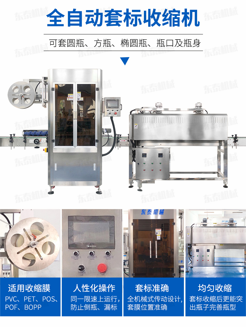 1. 本公司生產(chǎn)的套標(biāo)機(jī)適用于各種瓶型的果汁、茶飲料、乳制品、純凈水、調(diào)味品、啤酒、運(yùn)動(dòng)飲料等食品飲料行業(yè)、不但套標(biāo)位置度高,且收縮后更能突出瓶子完善瓶型。