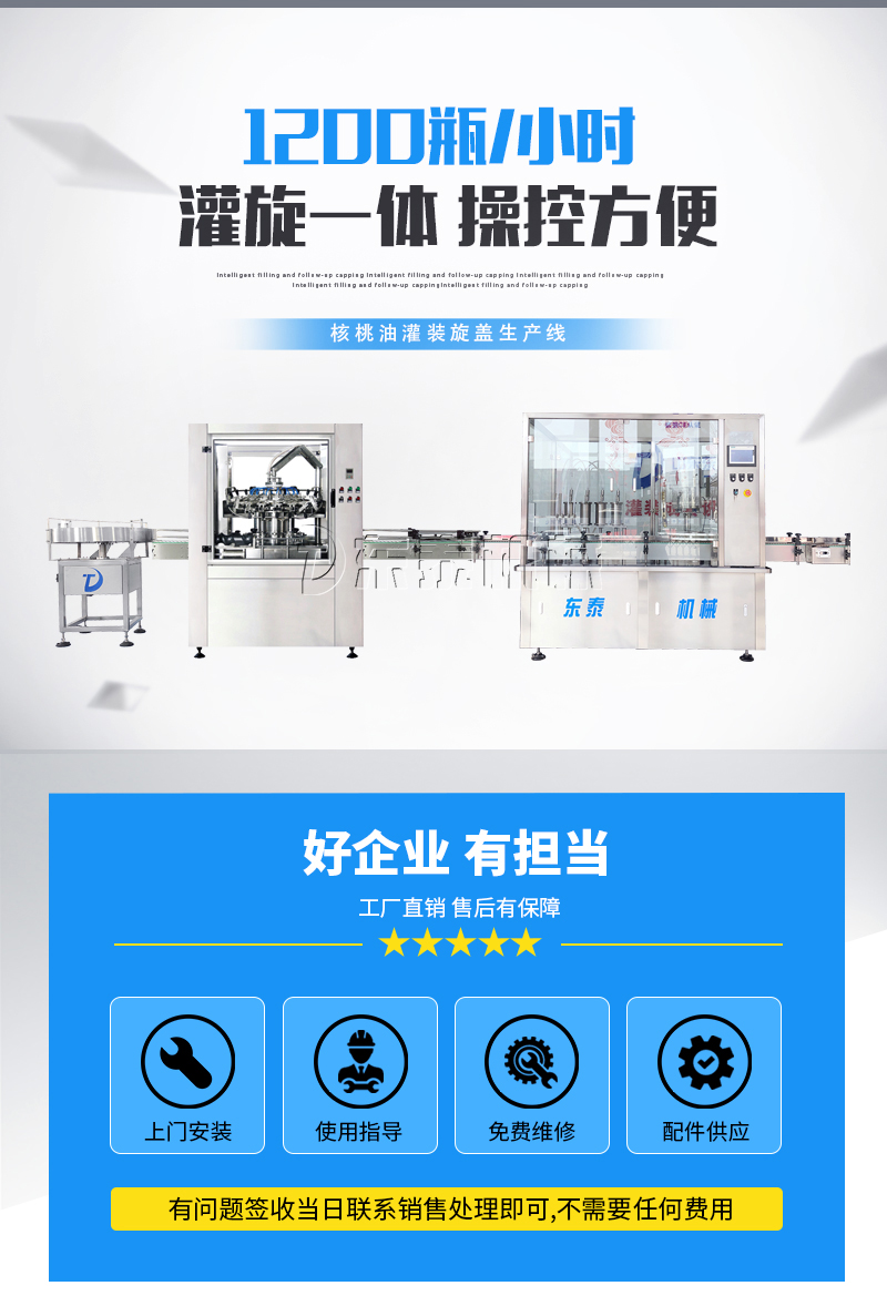 本灌裝流水線設備具有穩(wěn)定可靠、自動化水平高,相比同類產(chǎn)品有著更長的使用年限,維護簡單,整線中各設備的協(xié)調性、連貫性強,整線設計合理等特點。灌裝設備采用獨家專利系統(tǒng)結構,為當今行業(yè)內(nèi)水平,整