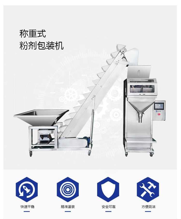 ZX-C型稱重式定量包裝機是一種機械給料與電子稱重組合的定量裝袋機械,廣泛適用于食鹽、化工原料、飼料、醫(yī)藥、糧食、食品添加劑等流動性較好的顆粒或粉狀物料的定量包裝,其優(yōu)點是:操作簡單、性能可靠、計量準確、價格便宜、耐腐蝕性強,是一種理想的定量包裝機械。