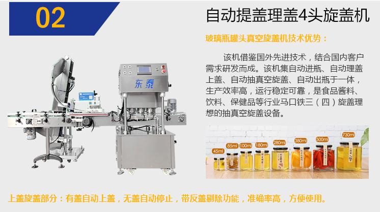 3、該機(jī)主要由瓶子輸送模塊、理蓋模塊、電動取蓋模塊、旋蓋模塊、抽真空系統(tǒng)、電控模塊組成,設(shè)計緊湊,自動化程度高,操作簡便,節(jié)省人工。
